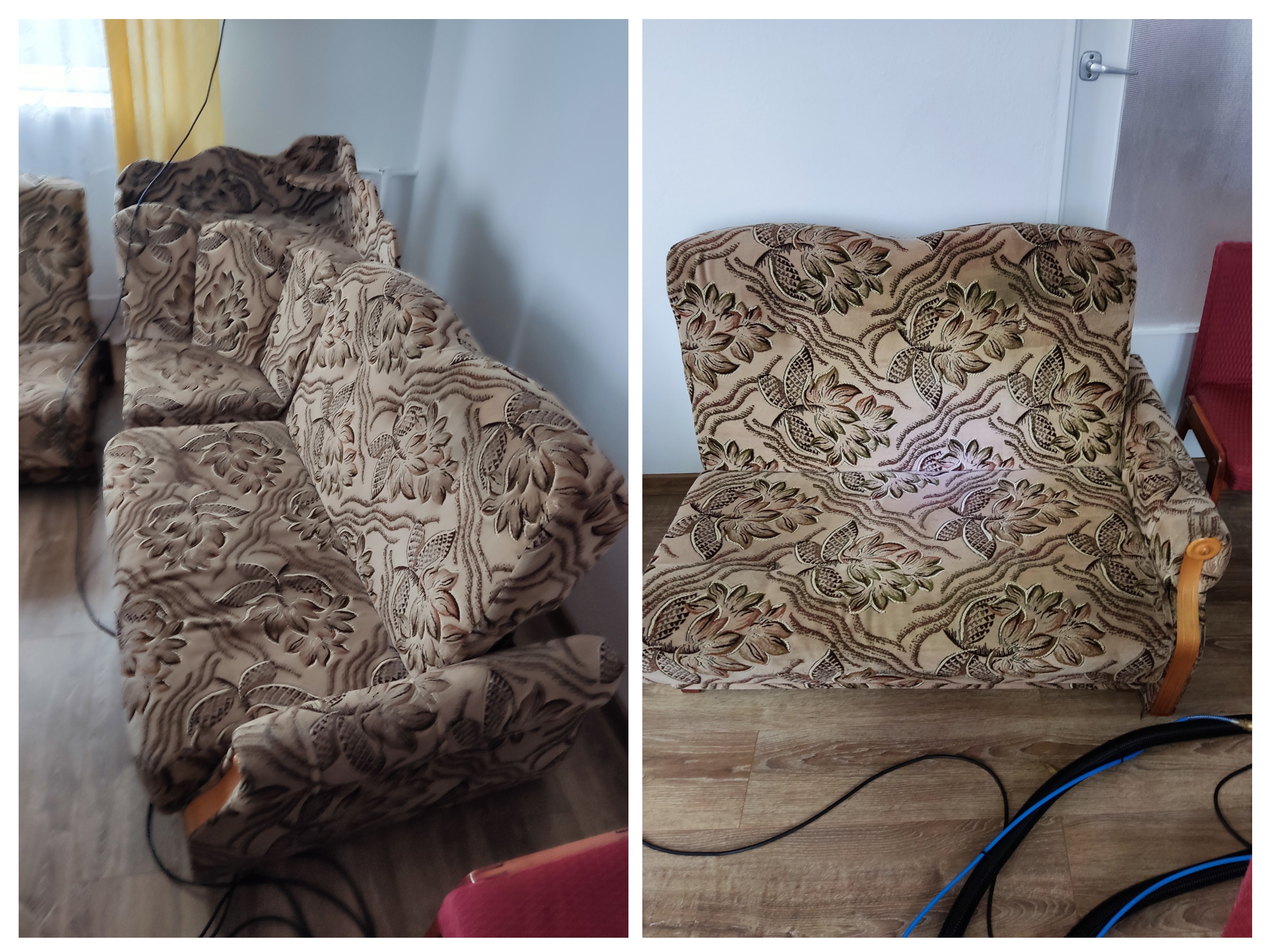 Pranie kanapy używanej ponad 20 lat, chemia alkaliczna plus solwenty.