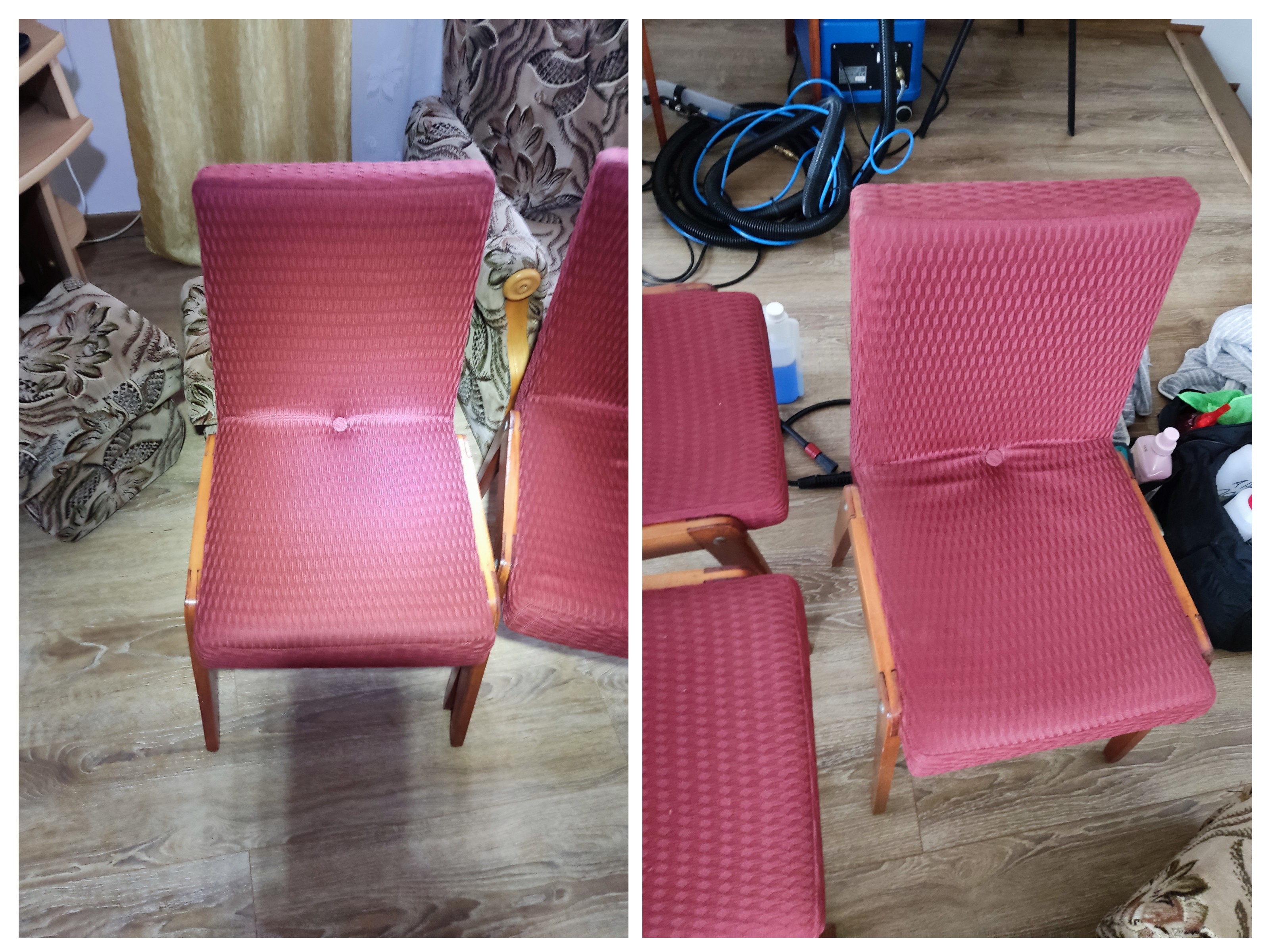 Czyszczenie mebli: narożnik, fotele, krzesła z sadzy po pożarze w kotłowni.